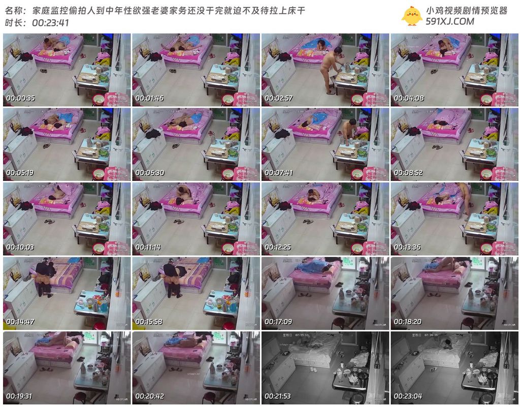 家庭监控偷拍人到中年性欲强老婆家务还没干完就迫不及待拉上床干