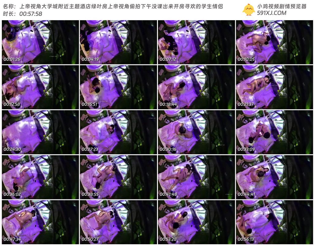 上帝视角大学城附近主题酒店绿叶房上帝视角偷拍下午没课出来开房寻欢的学生情侣
