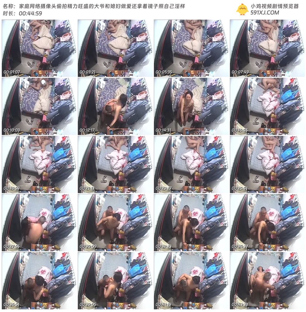 家庭网络摄像头偷拍精力旺盛的大爷和媳妇做爱还拿着镜子照自己淫样
