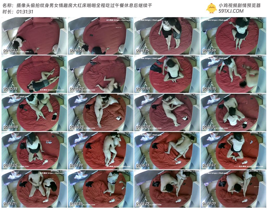 摄像头偷拍纹身男女情趣房大红床啪啪全程吃过午餐休息后继续干