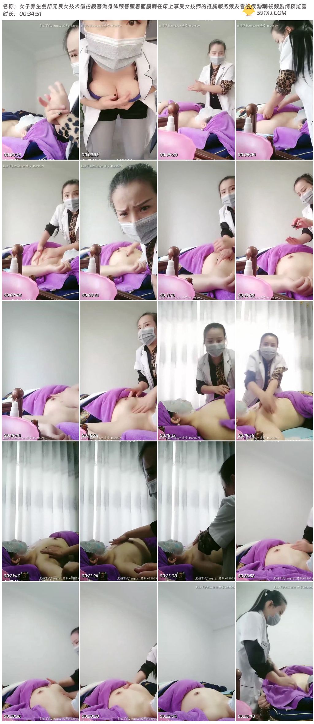 女子养生会所无良女技术偷拍顾客做身体顾客腹着面膜躺在床上享受女技师的推胸服务狼友看的很刺激