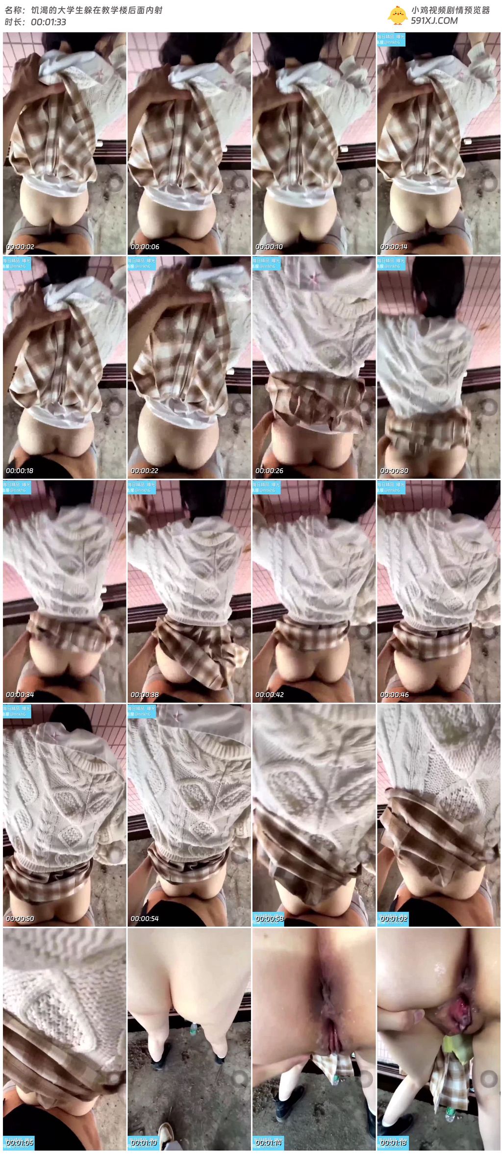 饥渴的大学生躲在教学楼后面内射