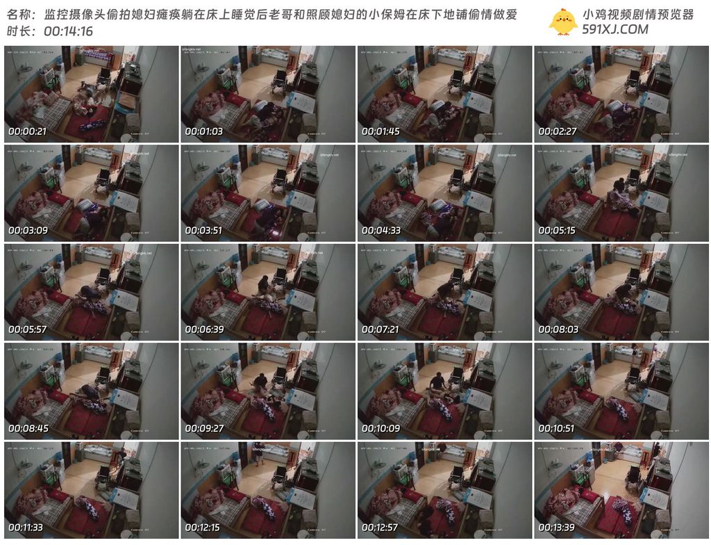 监控摄像头偷拍媳妇瘫痪躺在床上睡觉后老哥和照顾媳妇的小保姆在床下地铺偷情做爱