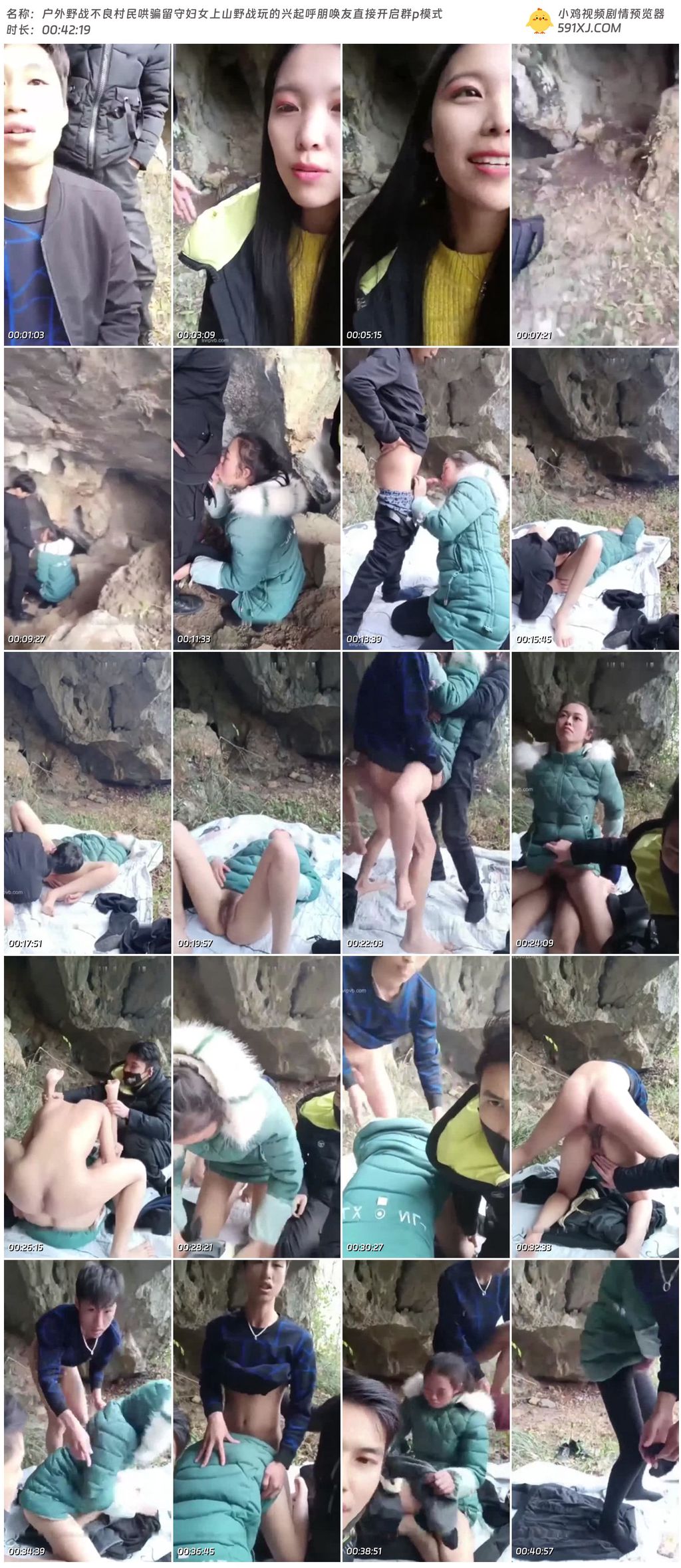户外野战不良村民哄骗留守妇女上山野战玩的兴起呼朋唤友直接开启群p模式
