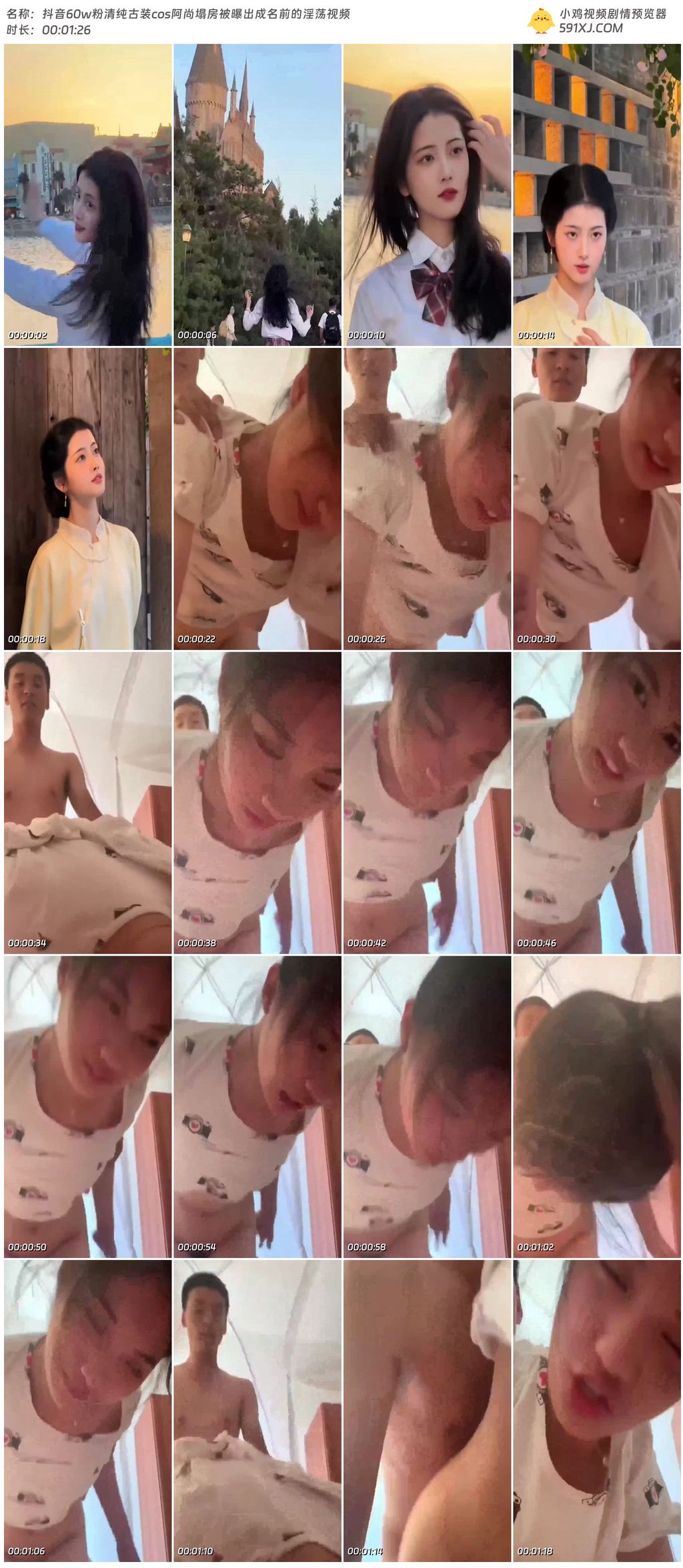抖音60w粉清纯古装cos阿尚塌房被曝出成名前的淫荡视频
