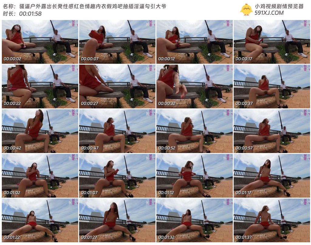 骚逼户外露出长凳性感红色情趣内衣假鸡吧抽插淫逼勾引大爷