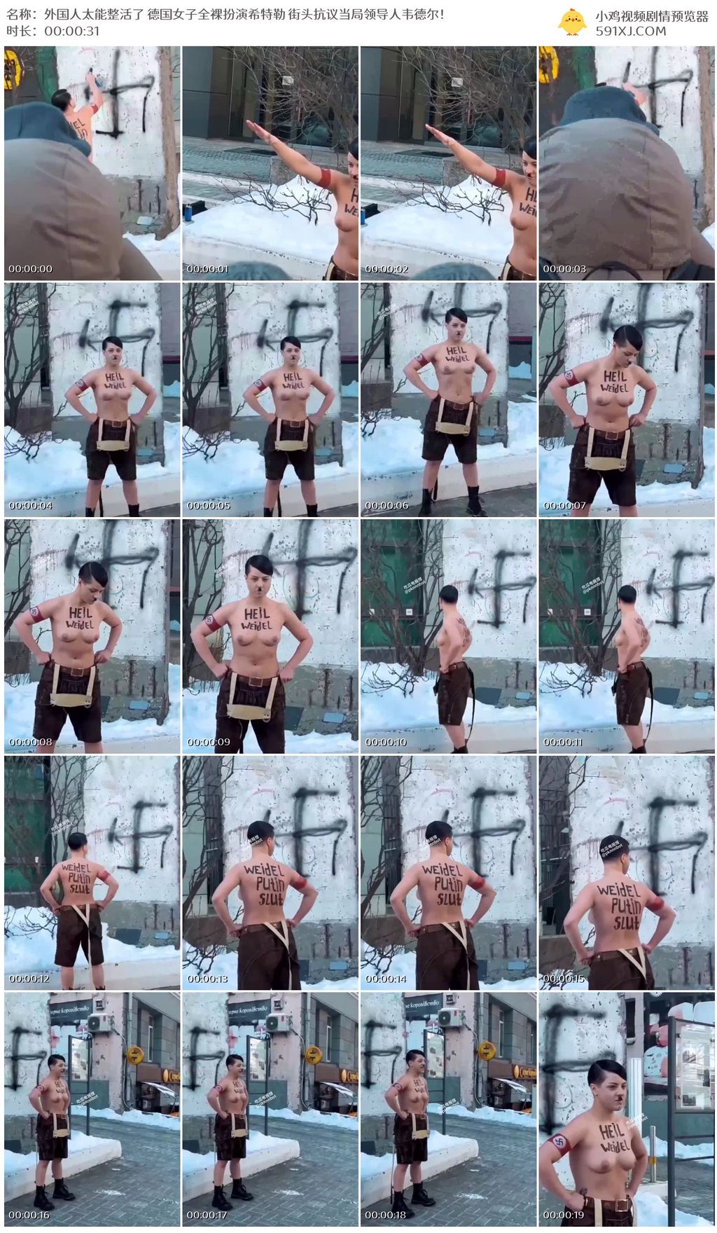 外国人太能整活了 德国女子全裸扮演希特勒 街头抗议当局领导人韦德尔!