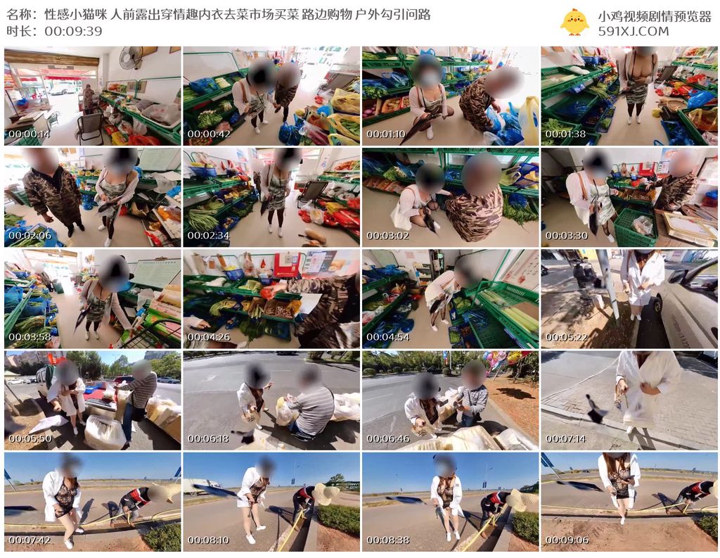 性感小猫咪 人前露出穿情趣内衣去菜市场买菜 路边购物 户外勾引问路