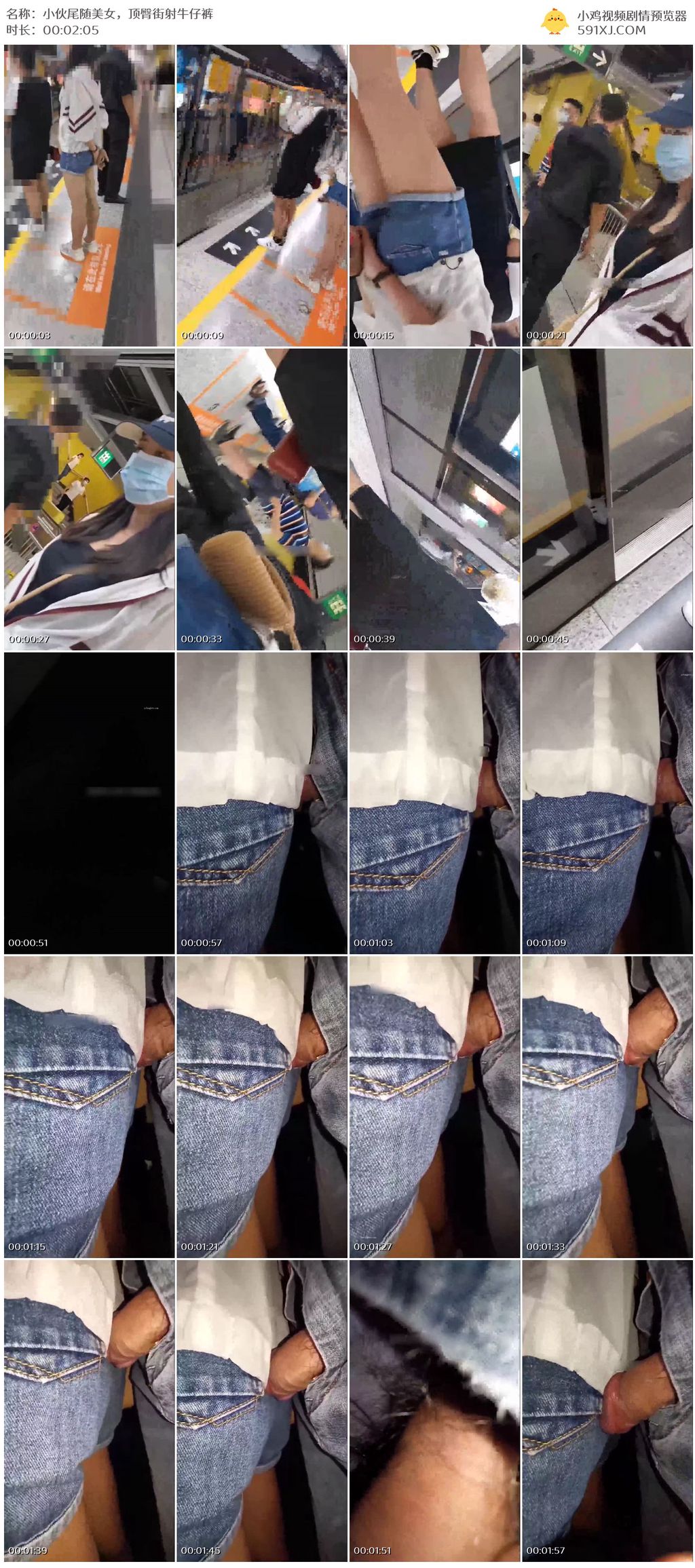 小伙尾随美女,顶臀街射牛仔裤