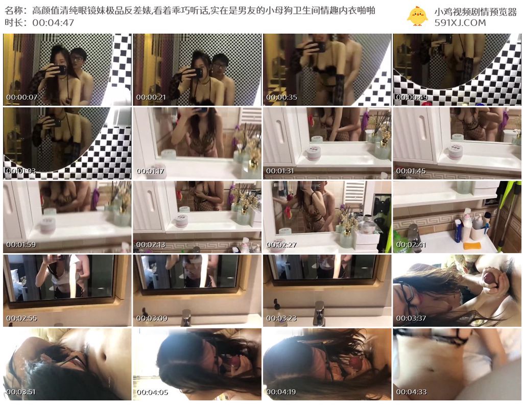 高颜值清纯眼镜妹极品反差婊,看着乖巧听话,实在是男友的小母狗卫生间情趣内衣啪啪